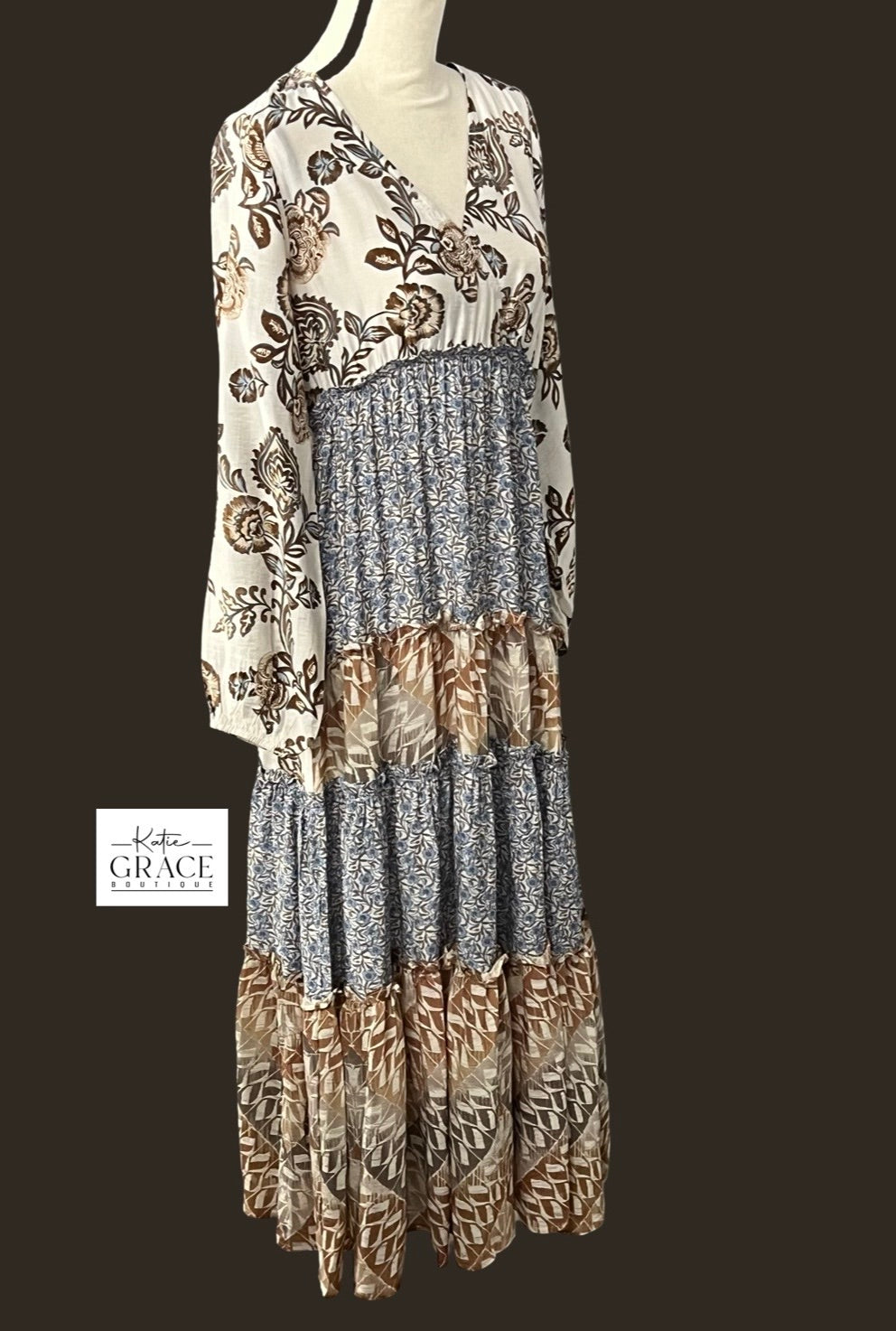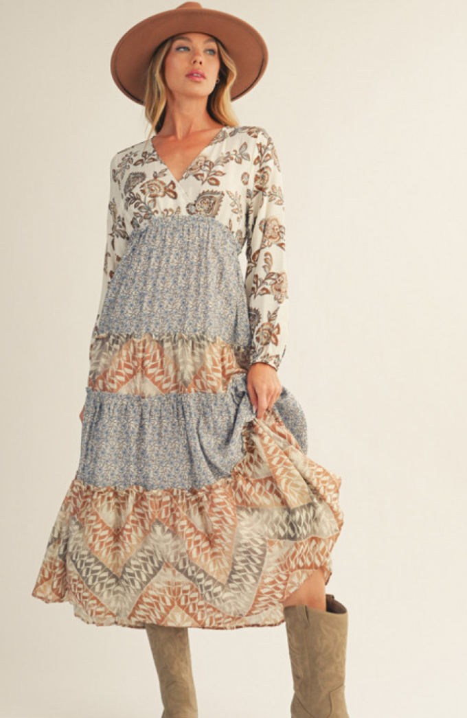 "Alicia" Tiered Mixed Pattern Dress
