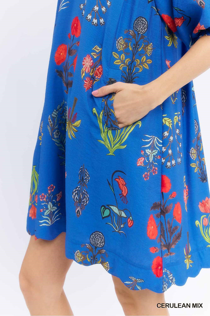 Puff sleeve , scalloped dress with lined pockets. S-L. $52