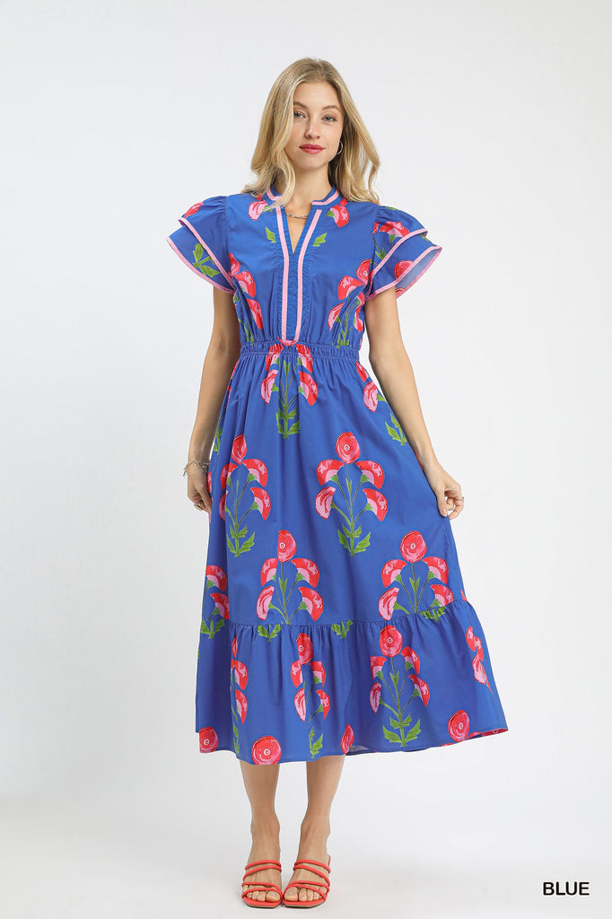 Midi dress with flutter sleeves. Lined. Available in S-L. $65