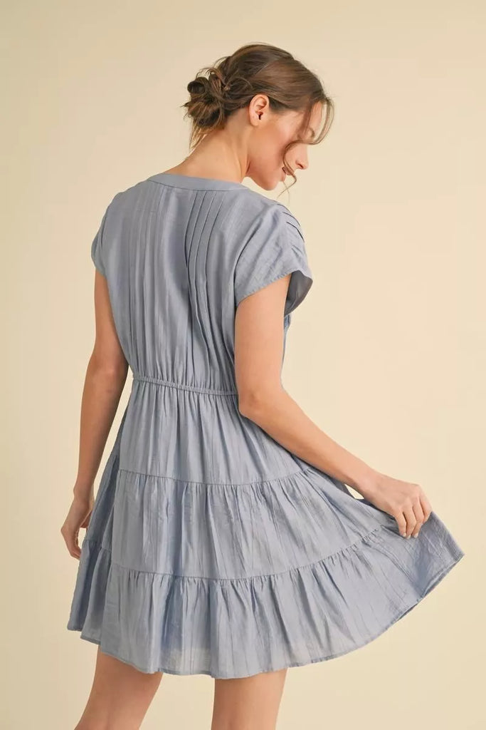 Cap sleeve dress. Lined with pockets. Available S-L. 3 colors