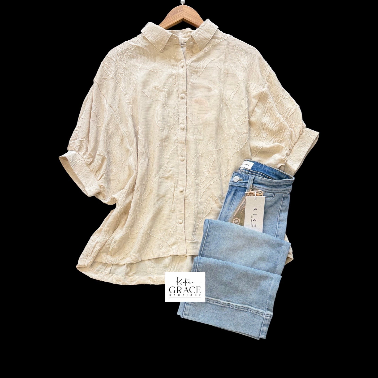 3/4 sleeve button down blouse. Oversized. Available in S-L. $32