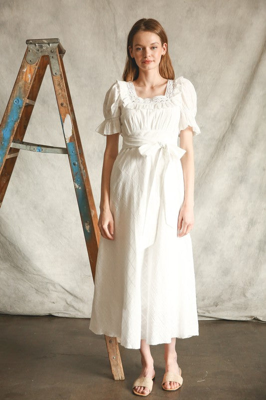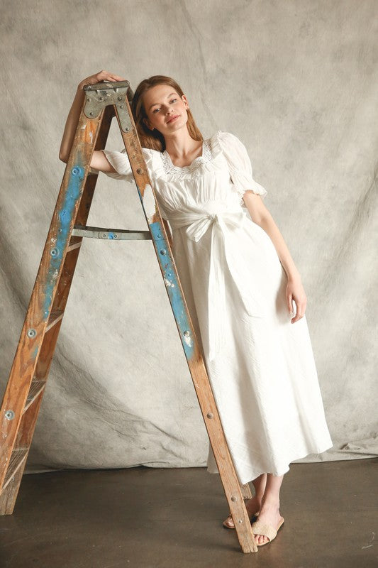 Puff sleeve, maxi dress. Beautiful details. Lined with pockets. Available in S-L. $52