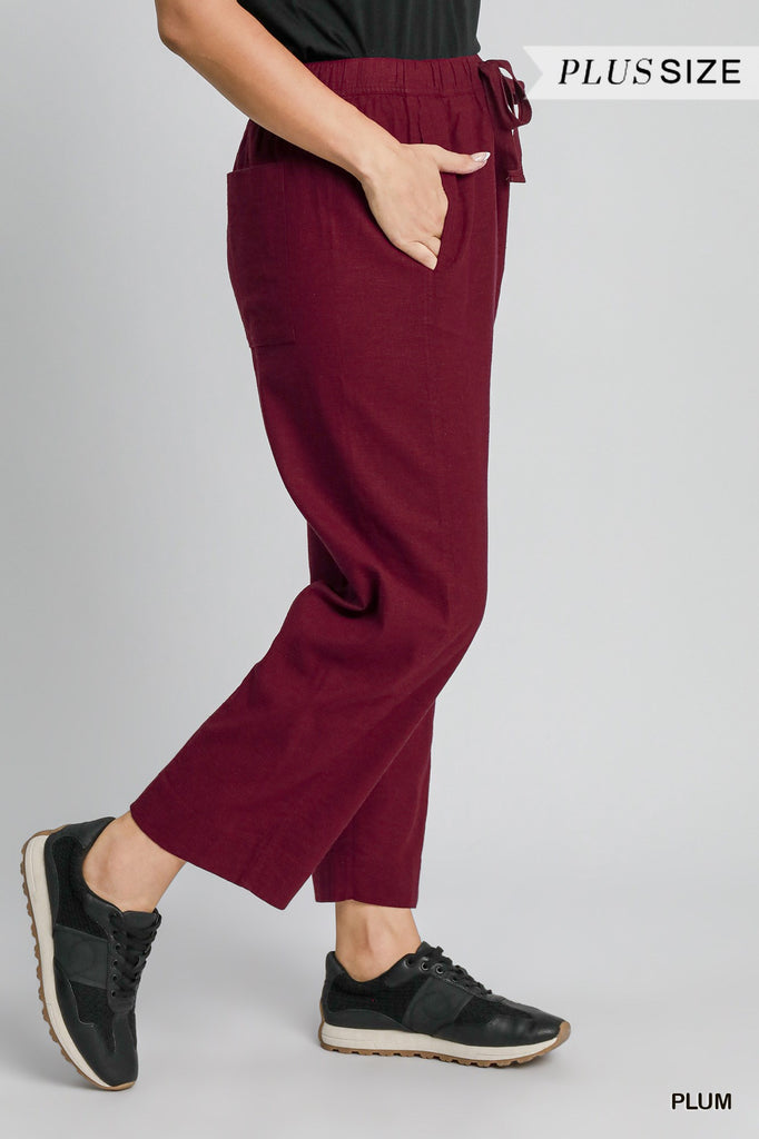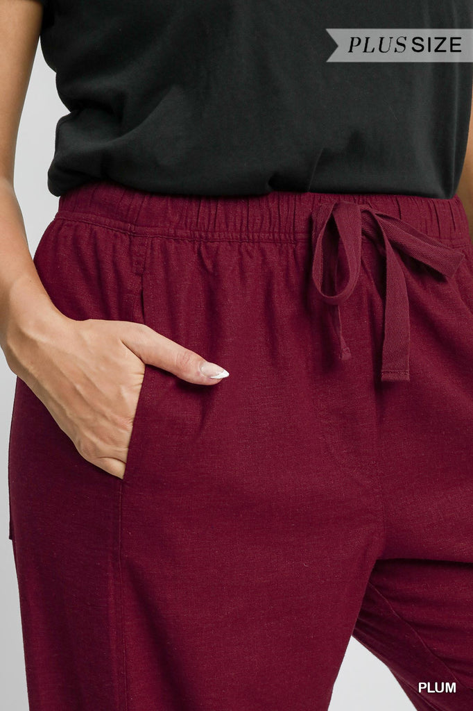 Elastic waist with drawstring, pockets. Wine or Black. Available in XL, 1XL, 2XL. $32