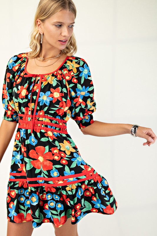 Puff sleeve dress lined with pockets. Available in S-L. $36
