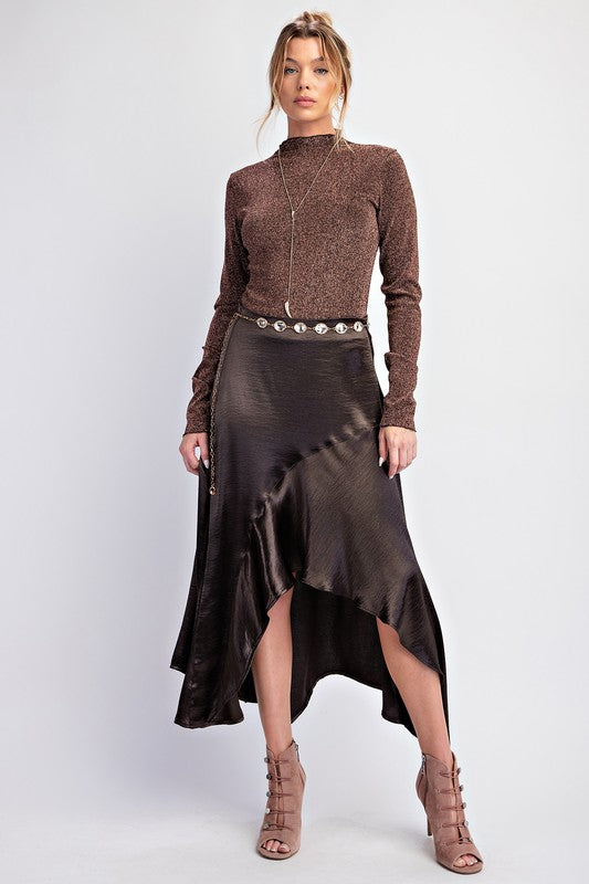 Long sleeve, mock neck top with metallic treads. Available in S-L. $28
