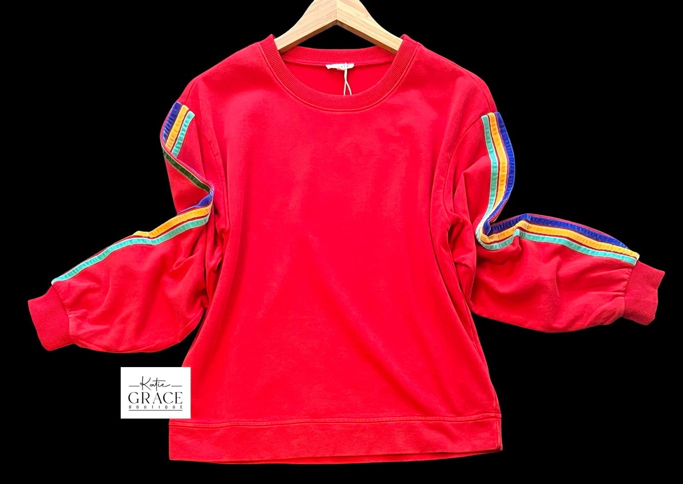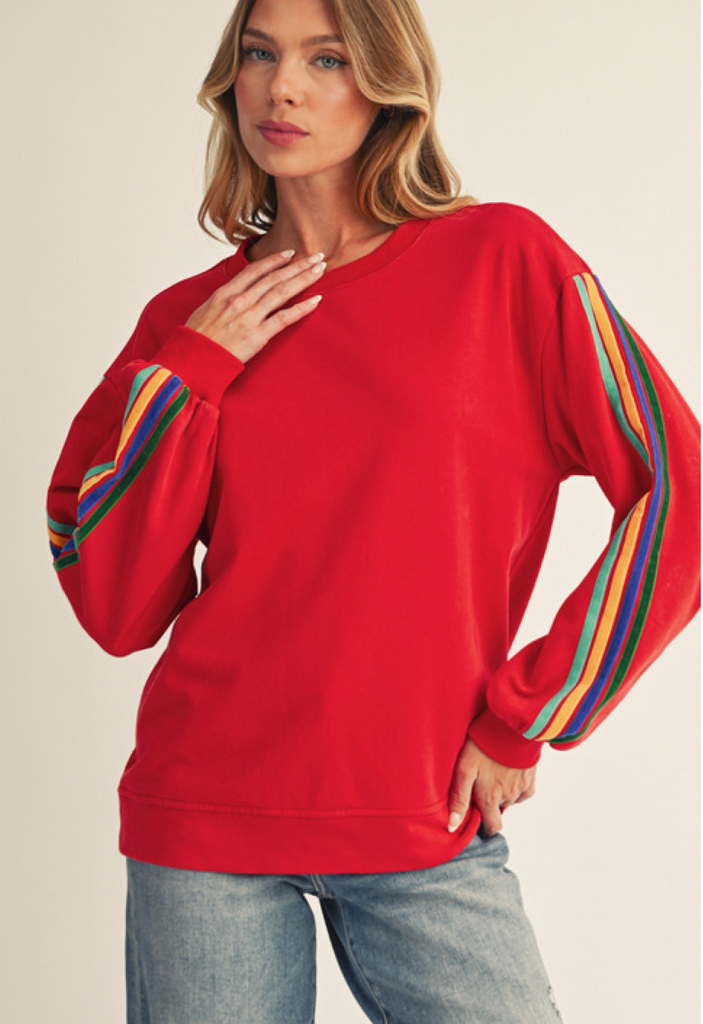 Long sleeve, mineral washed pullover. Velvet stripes. Available in S-L. $44