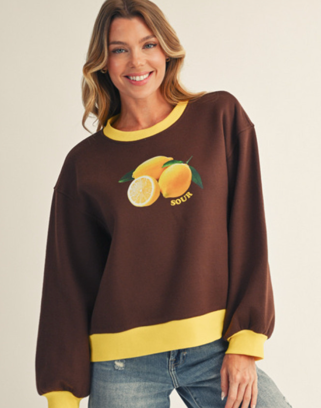 Fleece sweatshirt with fruit motif. S-L. $36