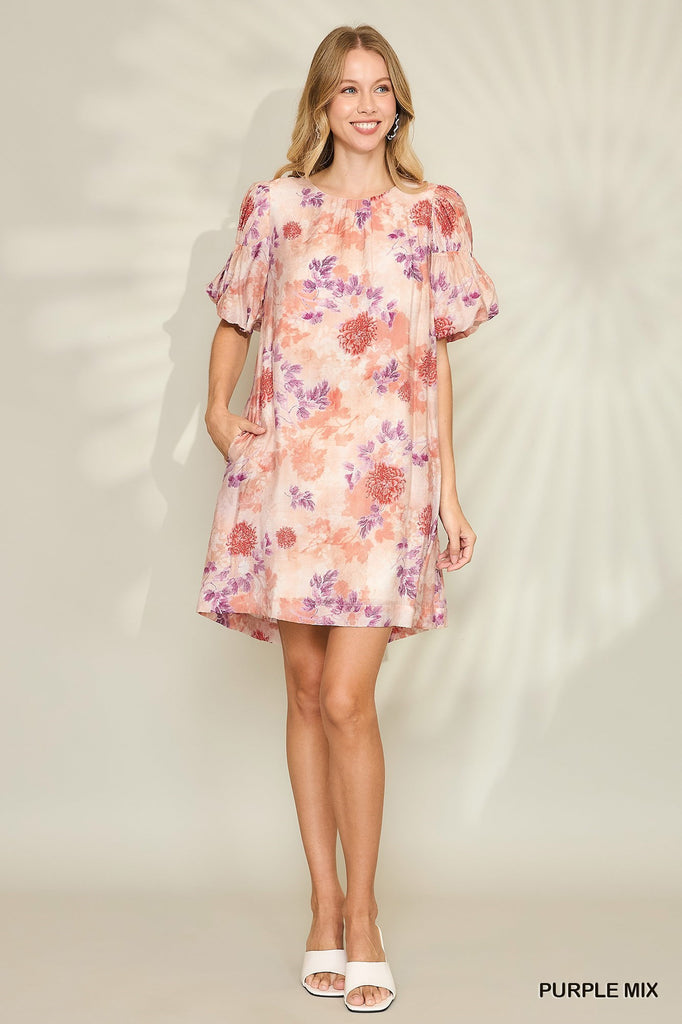 Short sleeve floral dress. Lined with pockets. Available in S-L. $42